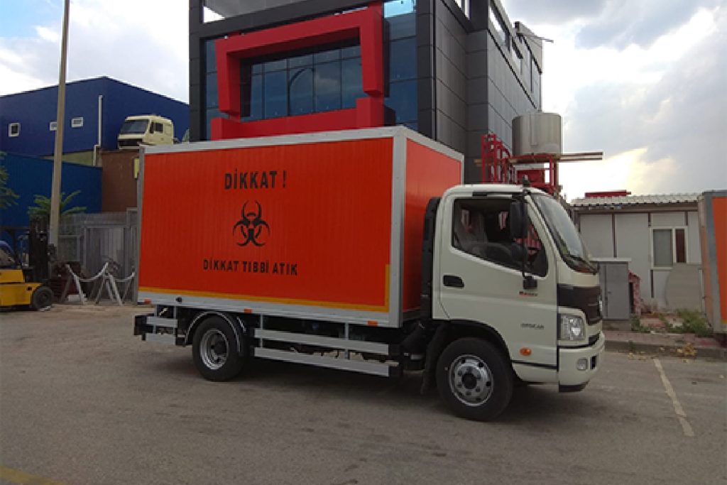 Las furgonetas de transporte de residuos médicos utilizadas por hospitales y centros de salud cuentan con grúas y sistemas hidráulicos especialmente fabricados.