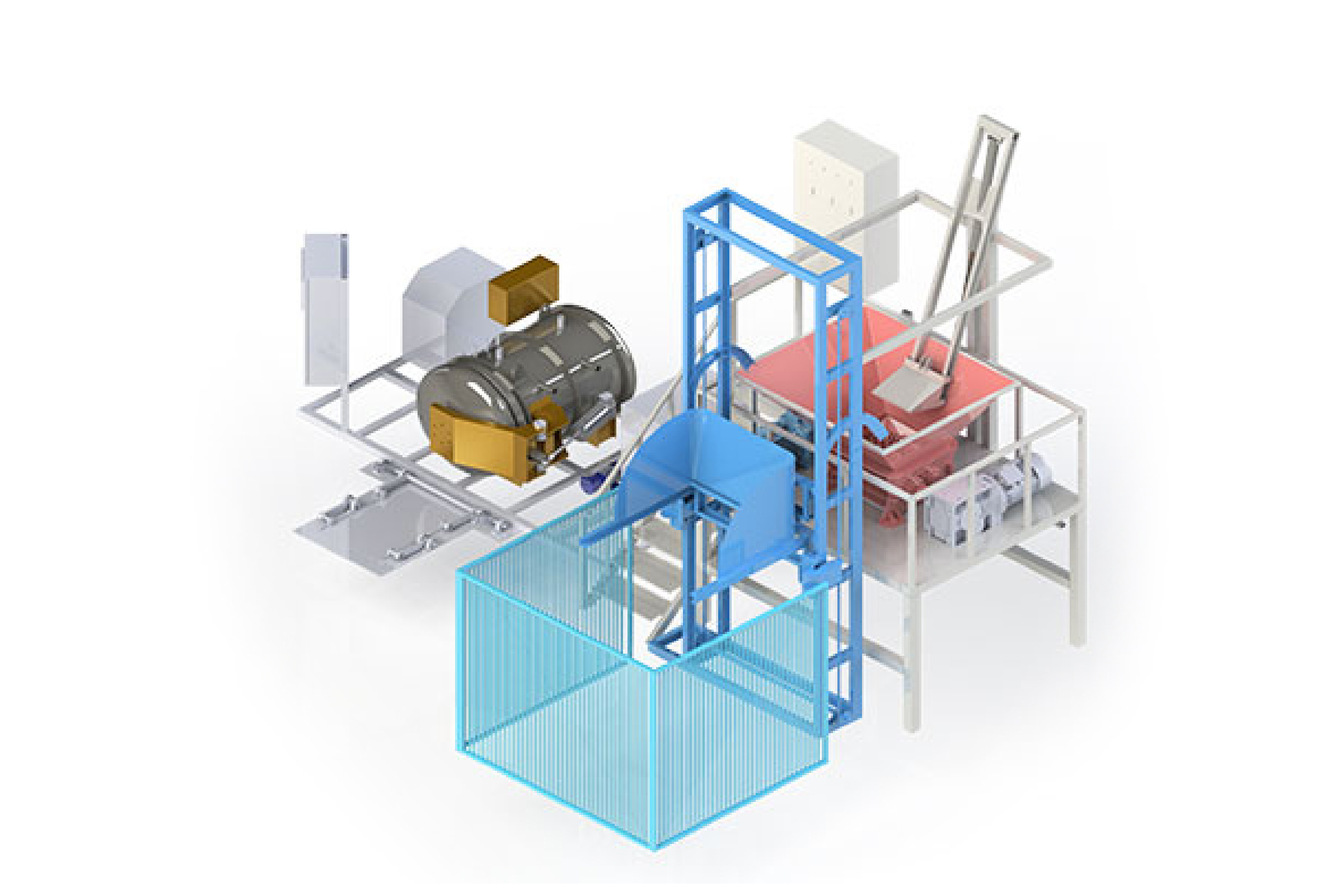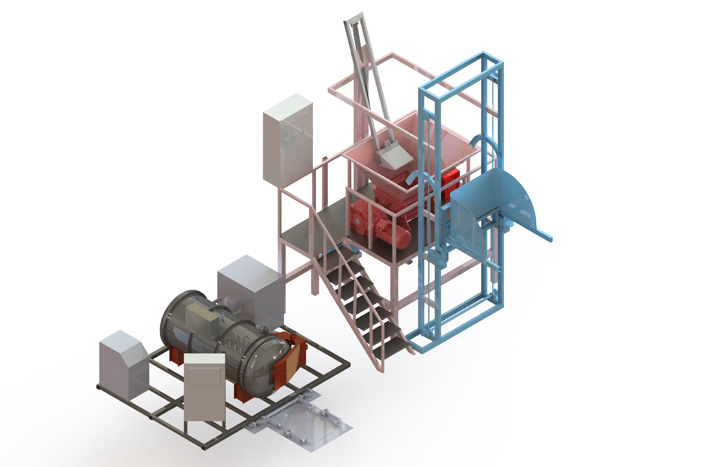 Sistema Post-Triturador, diseño para pequeños hospitales y clínicas. Proceso simultáneo de trituración y esterilización para una mayor capacidad de producción.